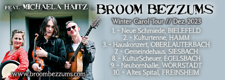 Auch in diesem Winter beschwört die preisgekrönte Folkband Broom Bezzums eine ganz andere Weihnachtsstimmung, mit einem Schritt abseits des allgegenwärtigen, protzigen Kommerz, der im Widerspruch zu den Traditionen unserer Vorfahren scheint, und bietet einen spannenden, stimmungsvollen Abend der handgemachten saisonalen Musik.